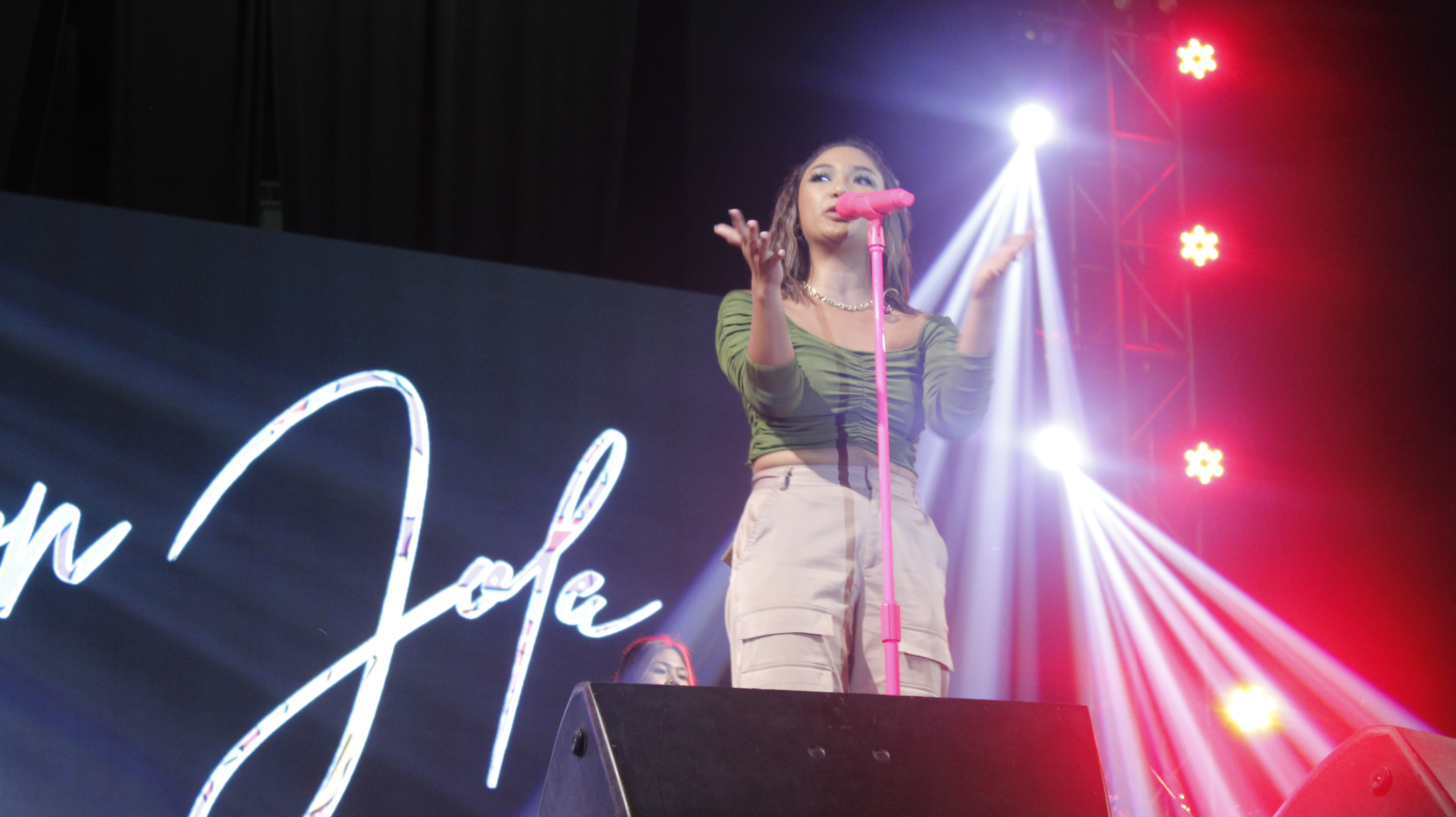 Solois wanita, Marion Jola tampil memeriahkan konser musik penutupan Manifest 2022 di Stadion DBL Arena Surabaya