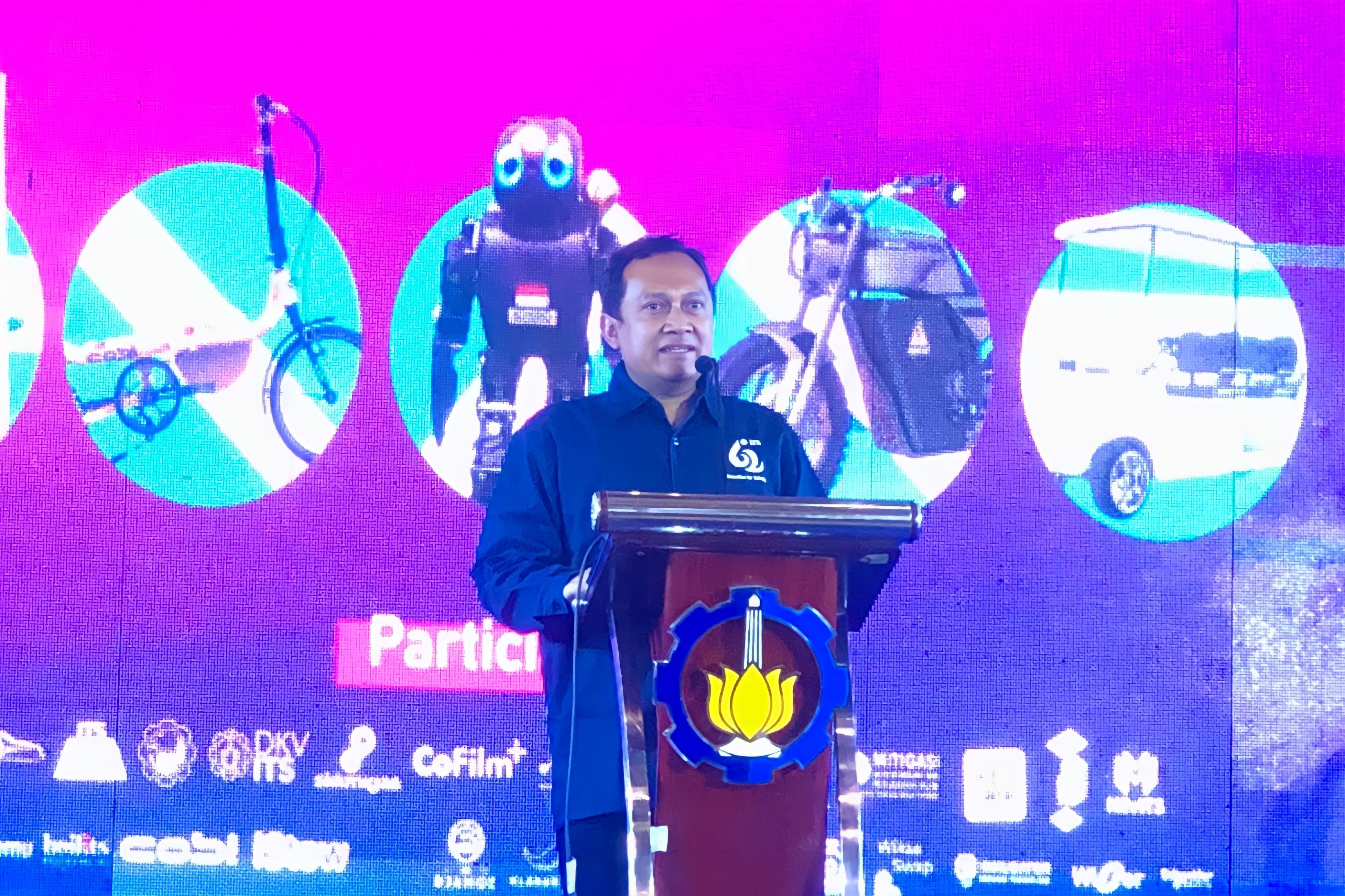 Direktur Inovasi dan Kawasan Sains Teknologi (DIKST) Agus Muhamad Hatta ST MSi PhD saat memberikan sambutan sekaligus menutup rangkaian pameran inovasi TENNOVEX 2022