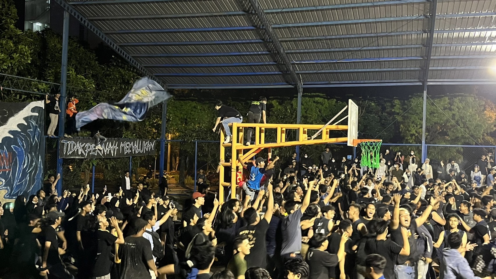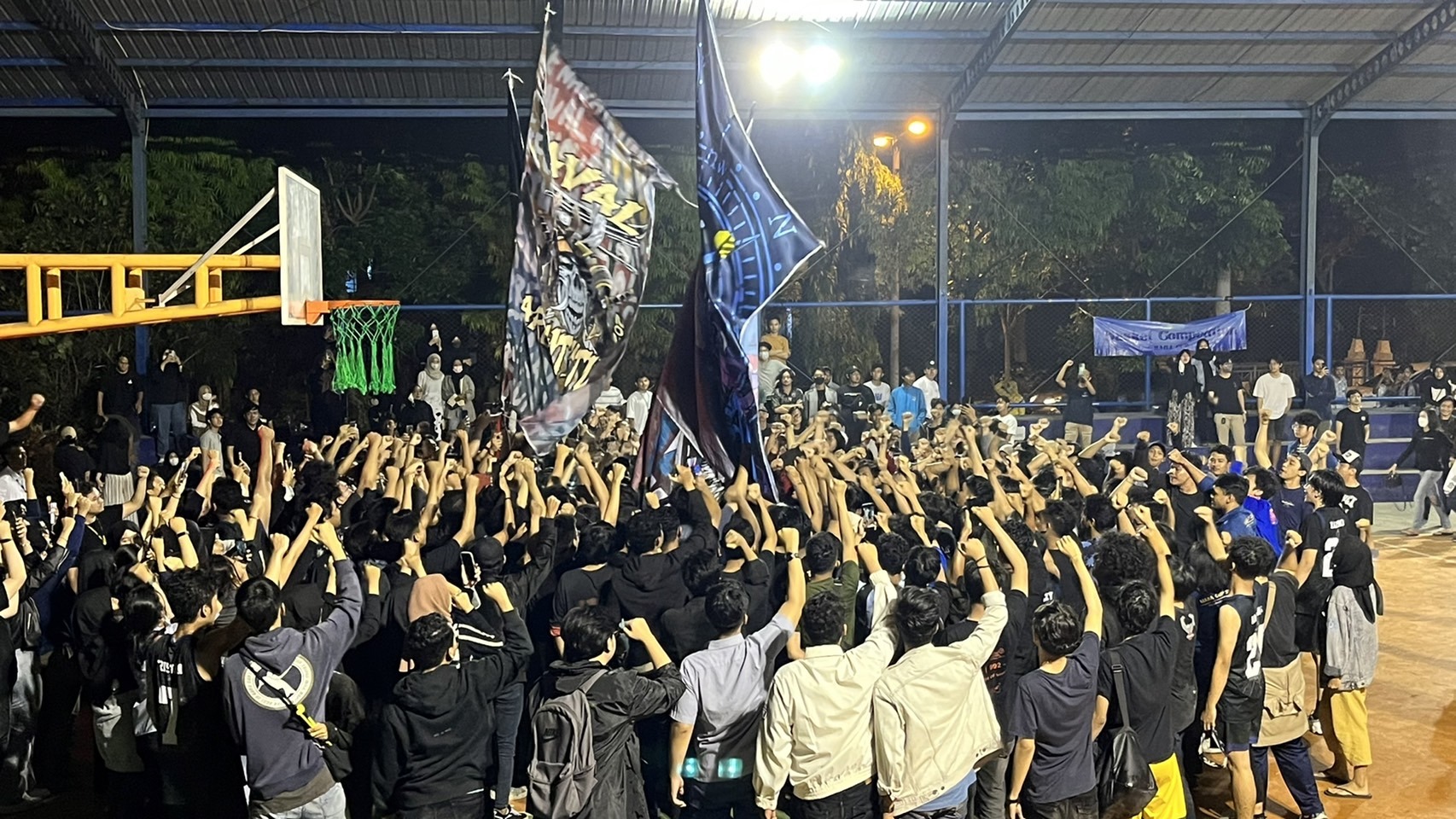 Suporter FTK yang tampak berbahagia selepas kemenangan tim basket Teknik Kelautan di Final Maba Cup 2022