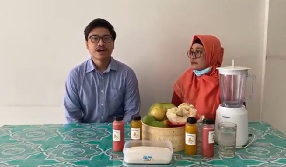 Salah satu mahasiswa tim Abmas saat melakukan pendampingan terhadap penggiat UMKM jus buah