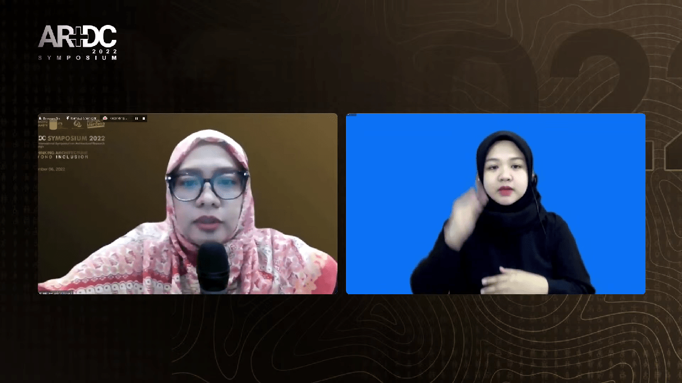 Senada dengan Allen, ketua penyelenggara simposium, Dr Arina Hayati ST MT dalam sambutannya menuturkan bahwa penerapan konsep desain inklusif dapat membantu terwujudnya ruang dan bangunan yang ramah pakai bagi semua orang. Pengaplikasian konsep tersebut akan membantu semua orang merasa turut disertakan dan dipertimbangkan dalam menciptakan bangunan yang baik. “Adapun konsep ini membantu terwujudnya 17 tujuan dalam Sustainable Development Goals (SDGs),” ujarnya.