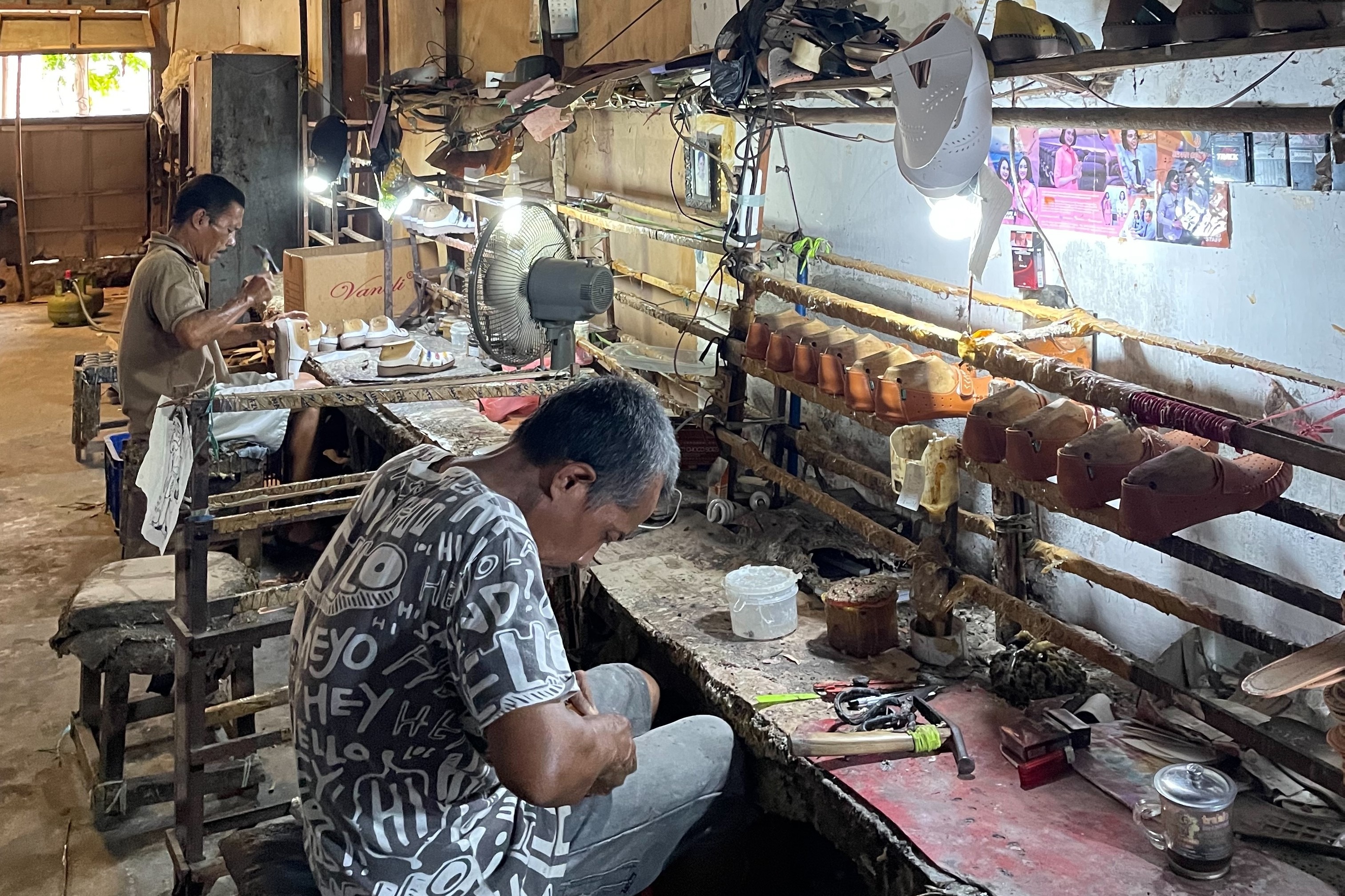 Proses produksi alas kaki salah satu pengrajin di Kecamatan Prajurit Kulon, Mojokerto