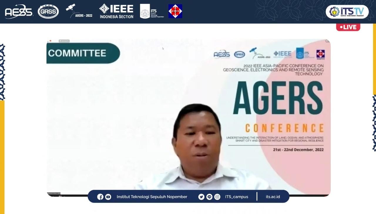 Kampus ITS, ITS News — Wadahi bahasan terkait riset penginderaan jauh dan kebumian, Institut Teknologi Sepuluh Nopember (ITS) ambil bagian dalam The 2022 Institute of Electrical and Electronic Engineering (IEEE) Asia-Pacific Conference on Geosciences, Electronics and Remote Sensing Technology (AGERS 2022). Konferensi bertaraf internasional ini digelar dua hari, sejak Rabu (21/12).