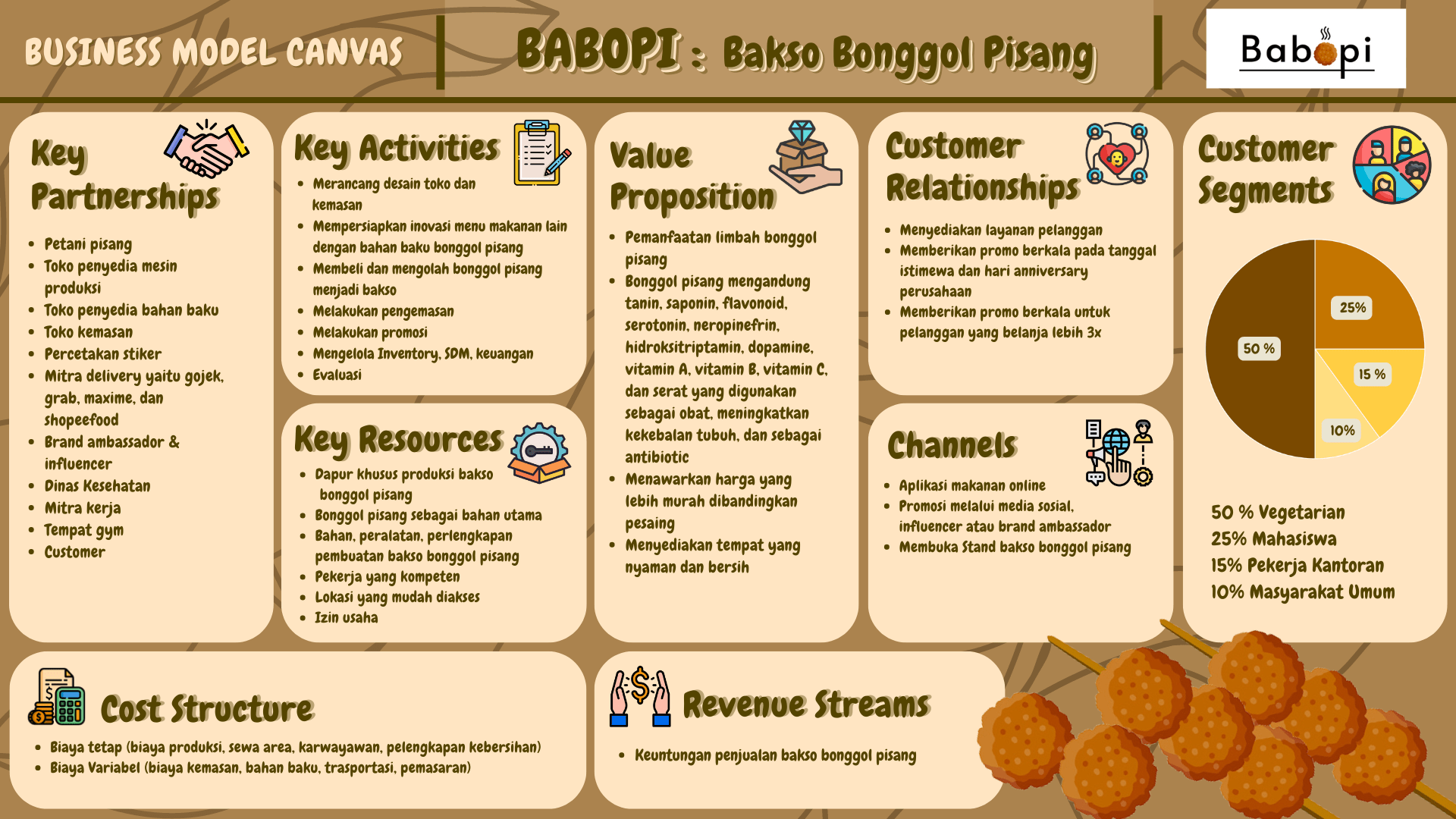 Business modal canvas terkait Babopi, bisnis bakso bonggol pisang rancangan tim Bisme