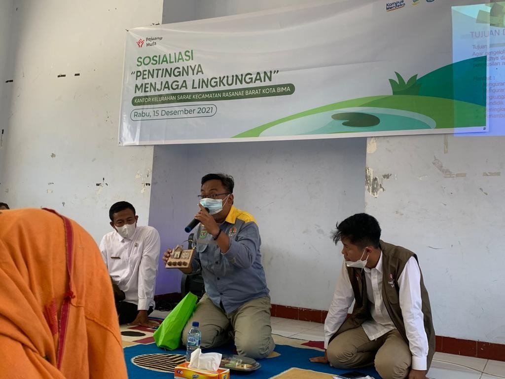 Anggota Pejuang Muda sedang menjelaskan pentingnya membuang sampah pada tempatnya kepada masyarakat Kelurahan Sarae Maraso