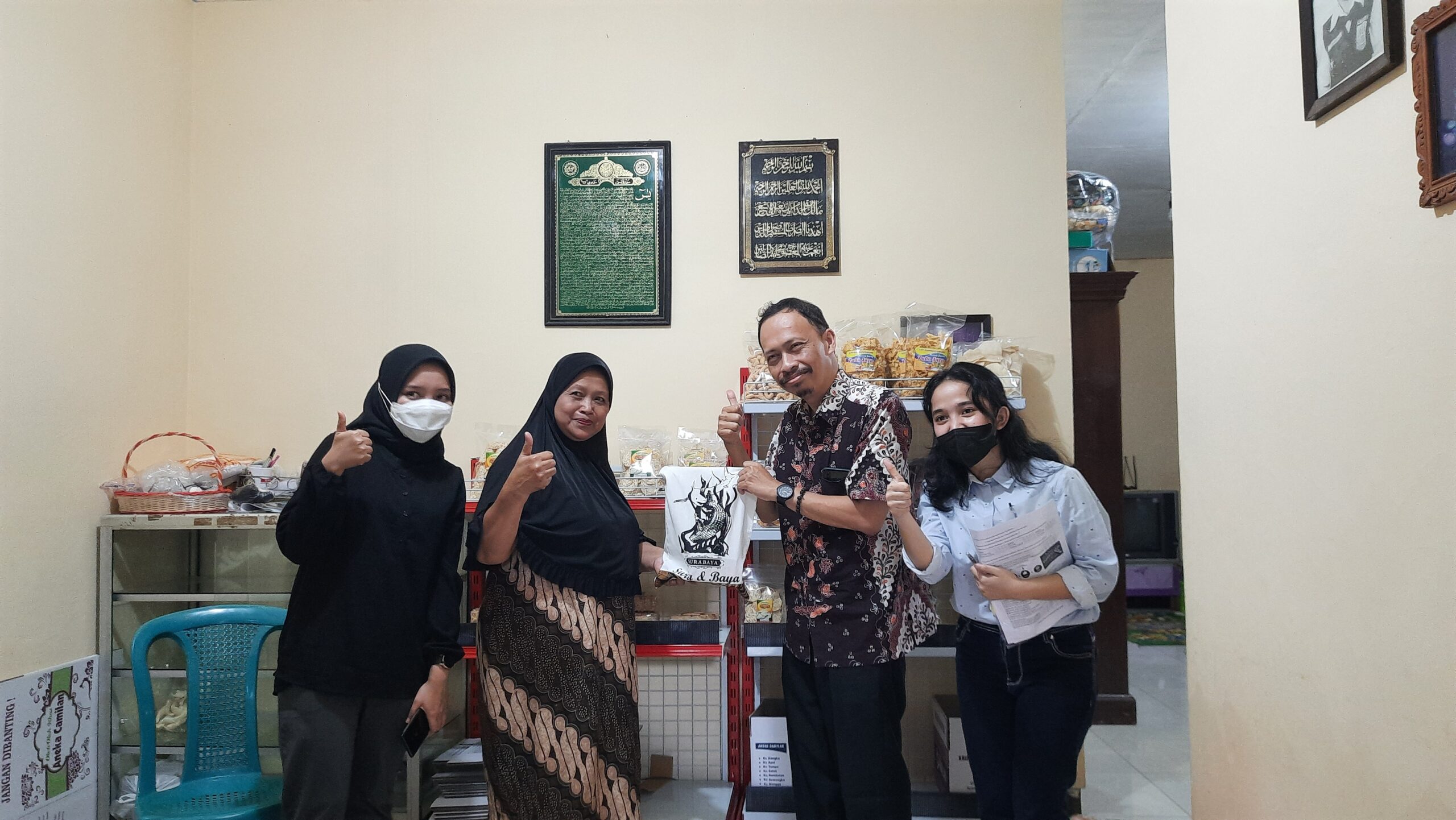Koordinator tim KKN Abmas, Rahmadhani Tasya Rahman beserta dosen pembimbing Yudha Prasetyawan ST Meng (sebelah kanan) melakukan kunjungan ke salah satu mitra UMKM BUMDesma Singosari