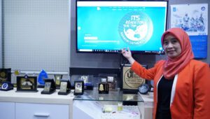 Sekretaris Institut ITS Dr Umi Laili Yuhana SKom MSc menunjukkan salah satu tampilan website ITS