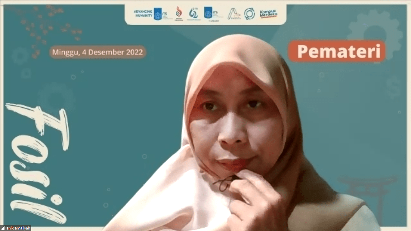 Anik Amaliyah Spd, staff Administrasi Umum dari Unit Pusat Bahasa Global sebagai pembicara pada Forum Diskusi (Fosil) Sosial 2022