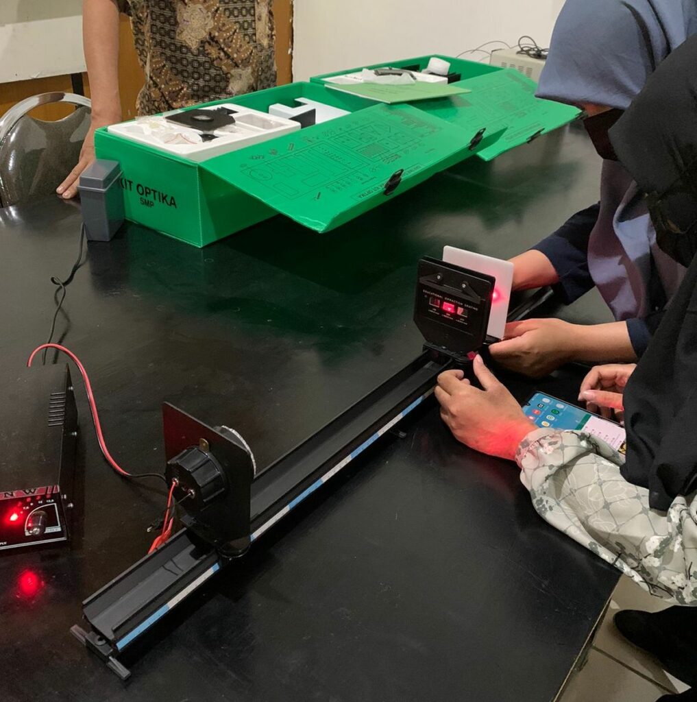 Bilqi menjelaskan, Kit Optika adalah kumpulan peralatan optik yang dipakai untuk melakukan percobaan dan demonstrasi yang menarik dalam pembelajaran tentang optika. Penggunaan Kit Optika dalam pembelajaran IPA dapat memudahkan siswa memahami fenomena interferensi, sifat-sifat cahaya, serta karakteristik lensa dan cermin. Namun, MTS Bulu Candimulyo belum memiliki alat ini sehingga dalam KKN ini, ITS juga menghibahkan dua unit Kit Optik.