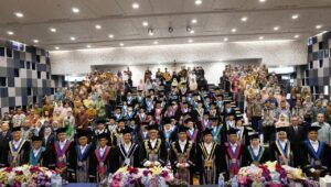 Enam profesor baru ITS usai dikukuhkan bersama jajaran pimpinan ITS, Dewan Profesor ITS dan tamu undangan yang hadir di Auditorium Gedung Pusat Riset ITS