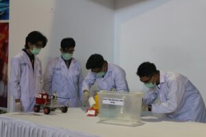 Tim Balapan Cakra dari UNS saat menyiapkan bahan reaksi kimia yang digunakan untuk tahap race pada ICRCC 2023 yang digelar Departemen Teknik Kimia ITS