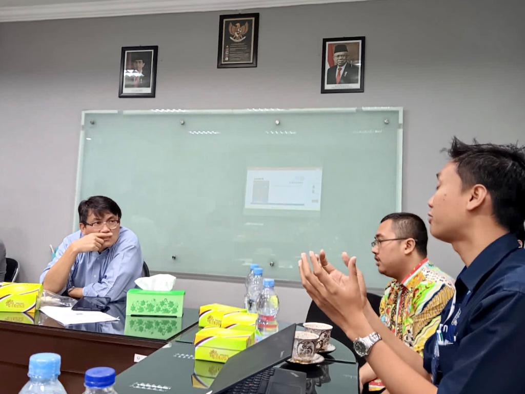 Diskusi dan penyampaian perihal kerja sama di sektor material energi oleh General Manager PT Pura Barutama Dandi Zulkarnain (kiri) dan pihak delegasi ITS