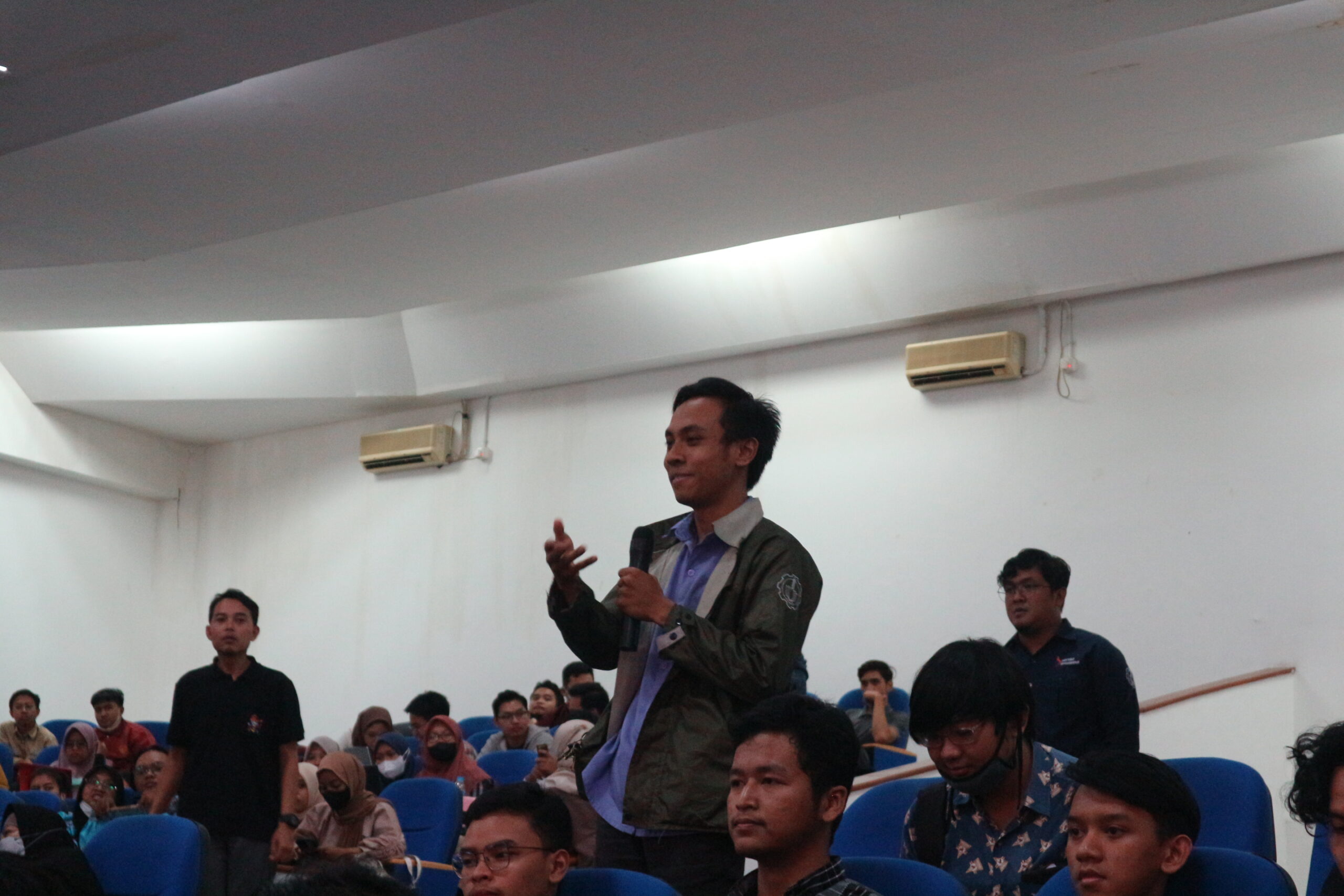 Salah satu peserta kuliah umum yang mengajukan pertanyaannya kepada Dr. Nurul Ghufron SH MH