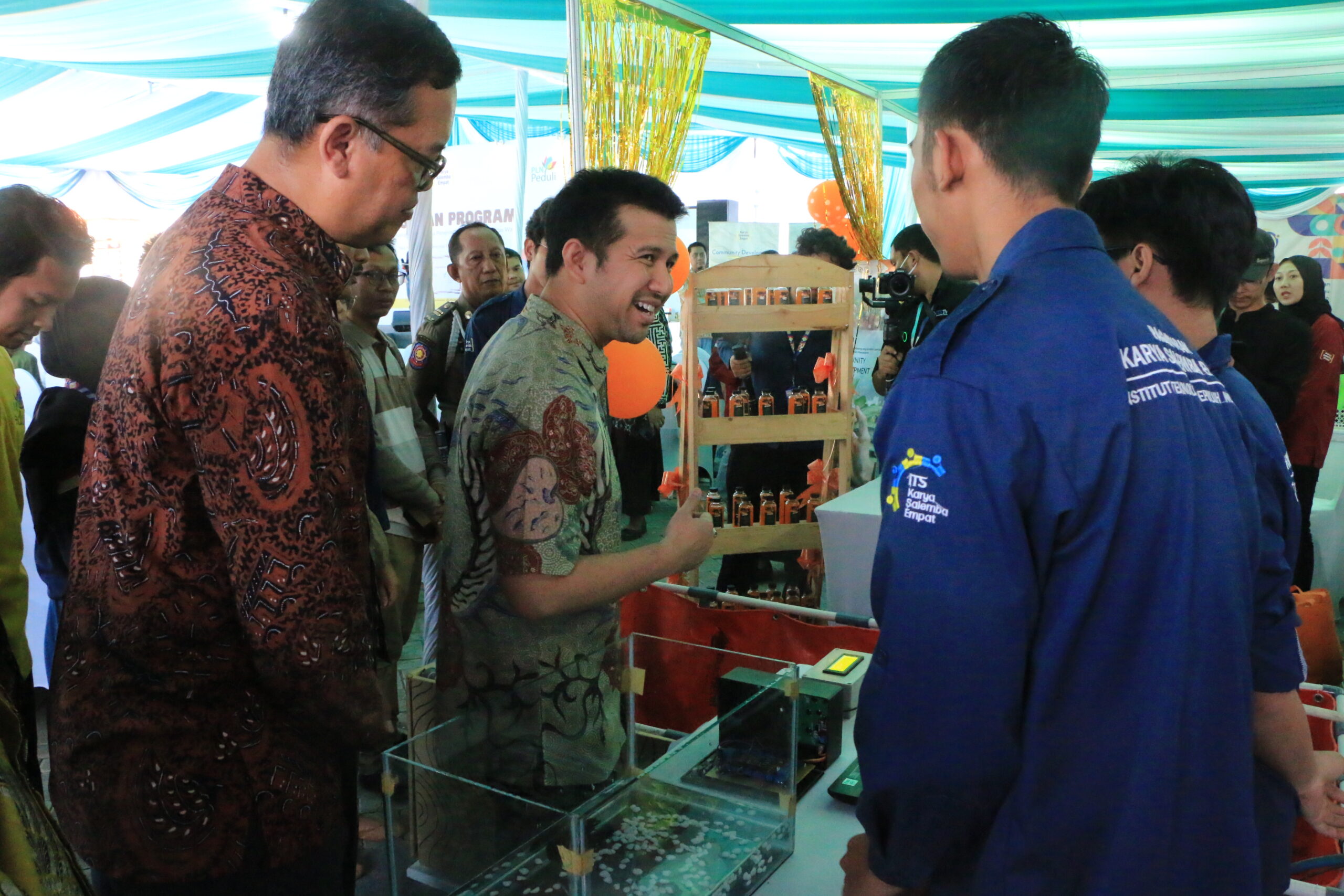 Wakil Gubernur Jawa Timur Dr H Emil Elistianto Dardak BBus MSc mengunjungi salah satu booth implementasi karya inovasi alat monitoring lobster otomatis dari KSE ITS