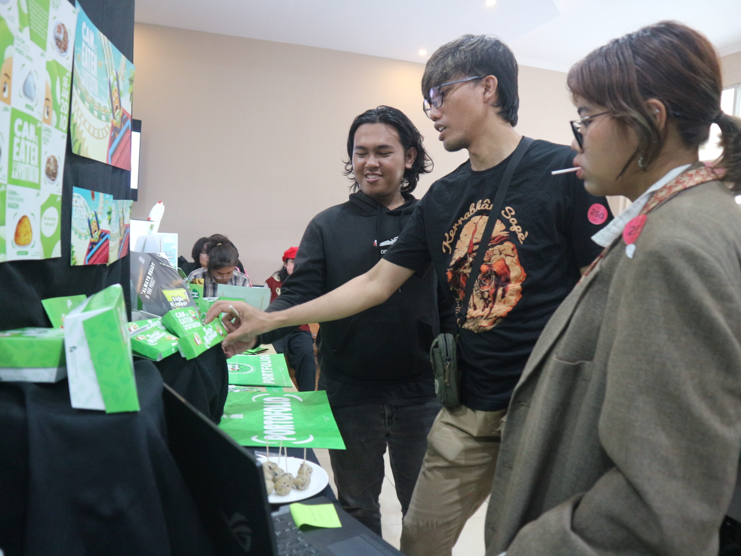 Salah satu mahasiswa DKV ITS saat memamerkan karyanya kepada para mahasiswa lain
