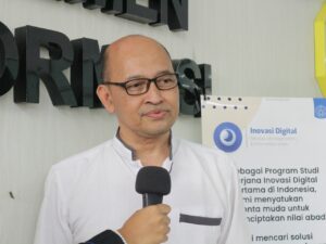 Ir Achmad Holil Noor Ali MKom saat menjelaskan terkait mekanisme penggunaan Mecca WABot di Laboratorium Manajemen Sistem Informasi ITS