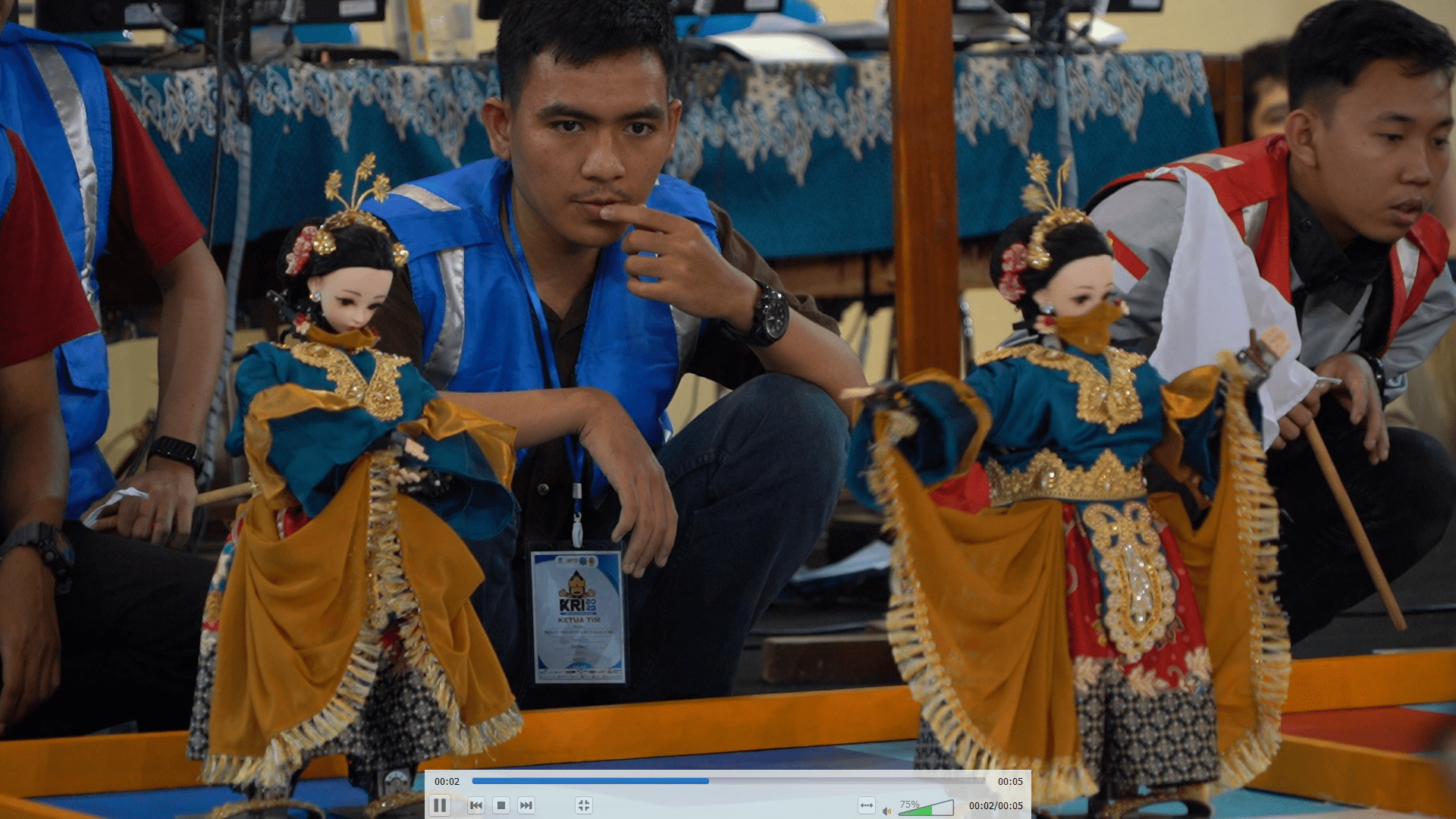Nina dan Zifa, robot TIM Vi-Rose menunjukkan kehalusan tarian Gambang Semarang mereka di panggung tanding KRI 2023