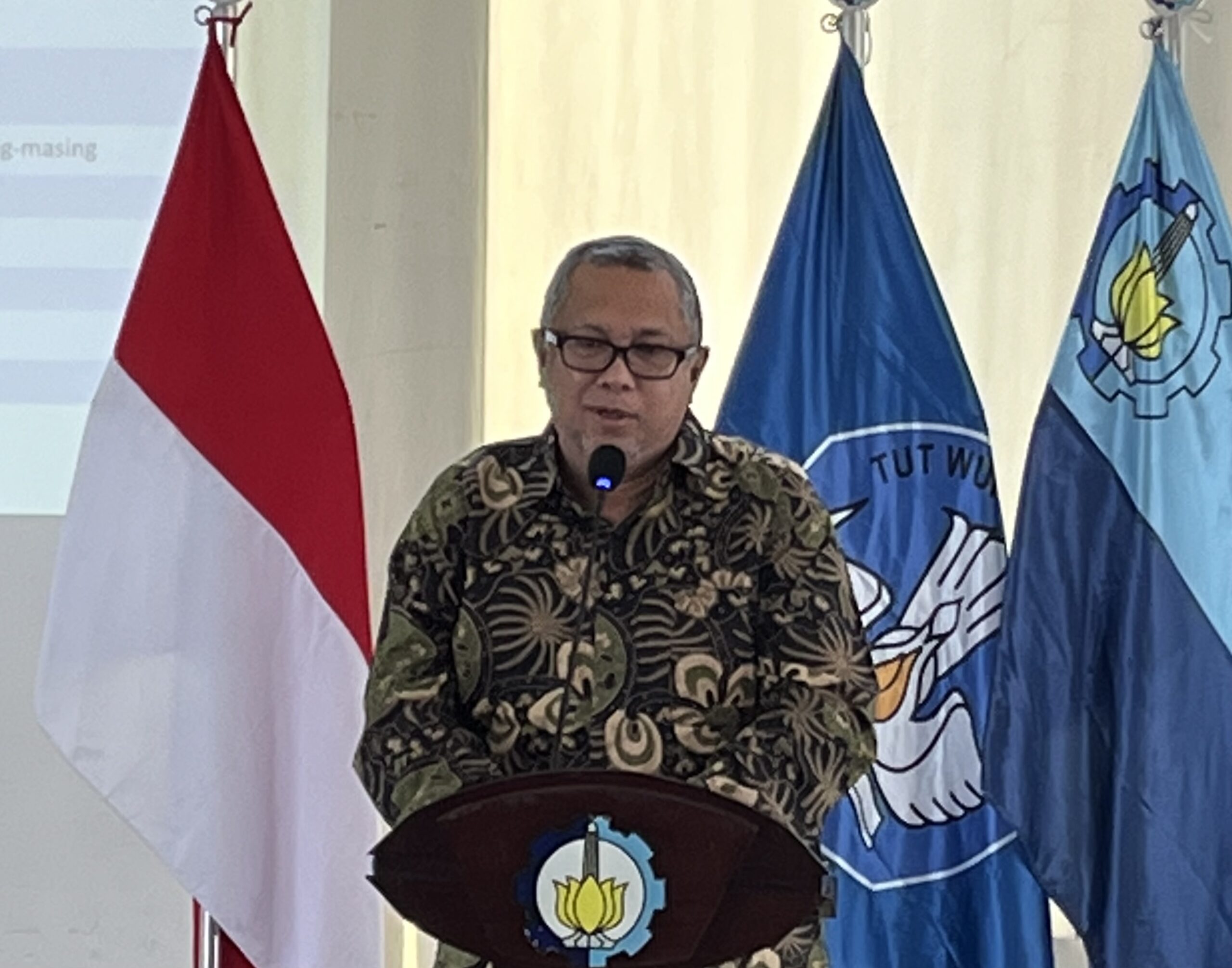 Wakil Rektor III ITS Bidang Sumber Daya Manusia, Organisasi, dan Teknologi Sistem Informasi Dr Ahmad Rusdiansyah CSCP CLTD IPU saat memberikan sambutan