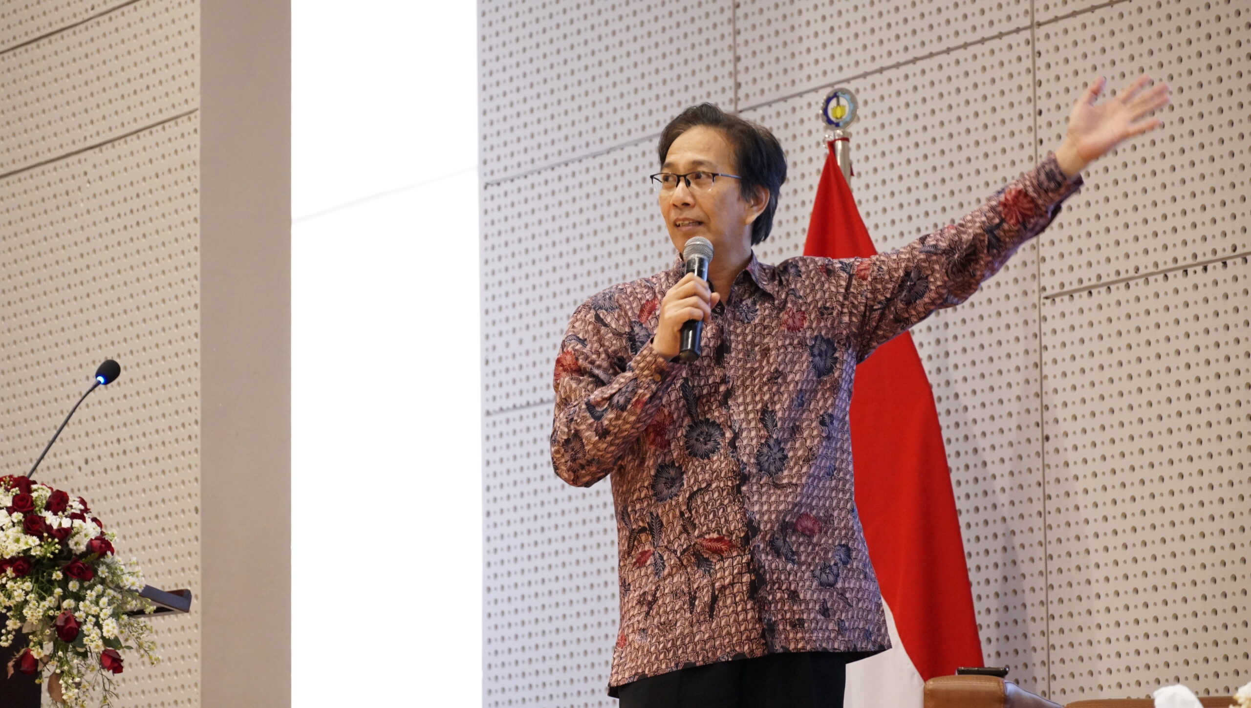 Rektor ITS, Prof Dr Ir Mochamad Ashari MEng IPU AEng ketika membuka agenda Sekolah Kepemimpinan 2023 dengan materinya