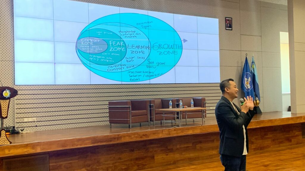 Penyampaian materi terkait Comfort Zone vs Growth Zone yang dipaparkan oleh Dosen Psikologi Universitas Airlangga (UNAIR), Afif Kurniawan SPsi MPsi Psikolog