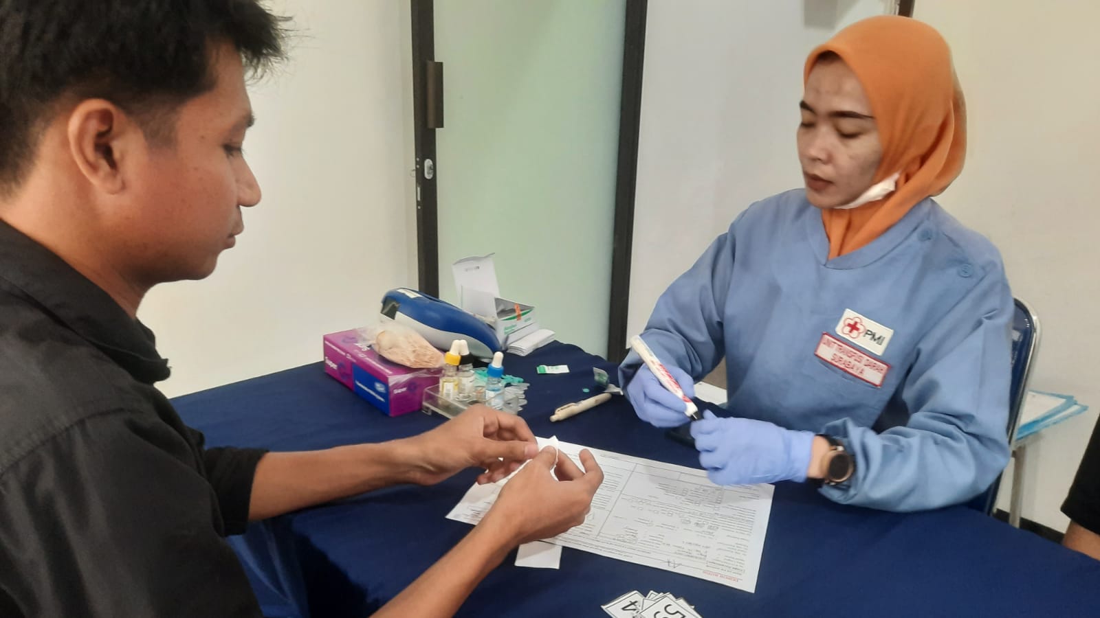 Salah satu mahasiswa tengah melakukan cek data kesehatan sebelum melakukan donor darah