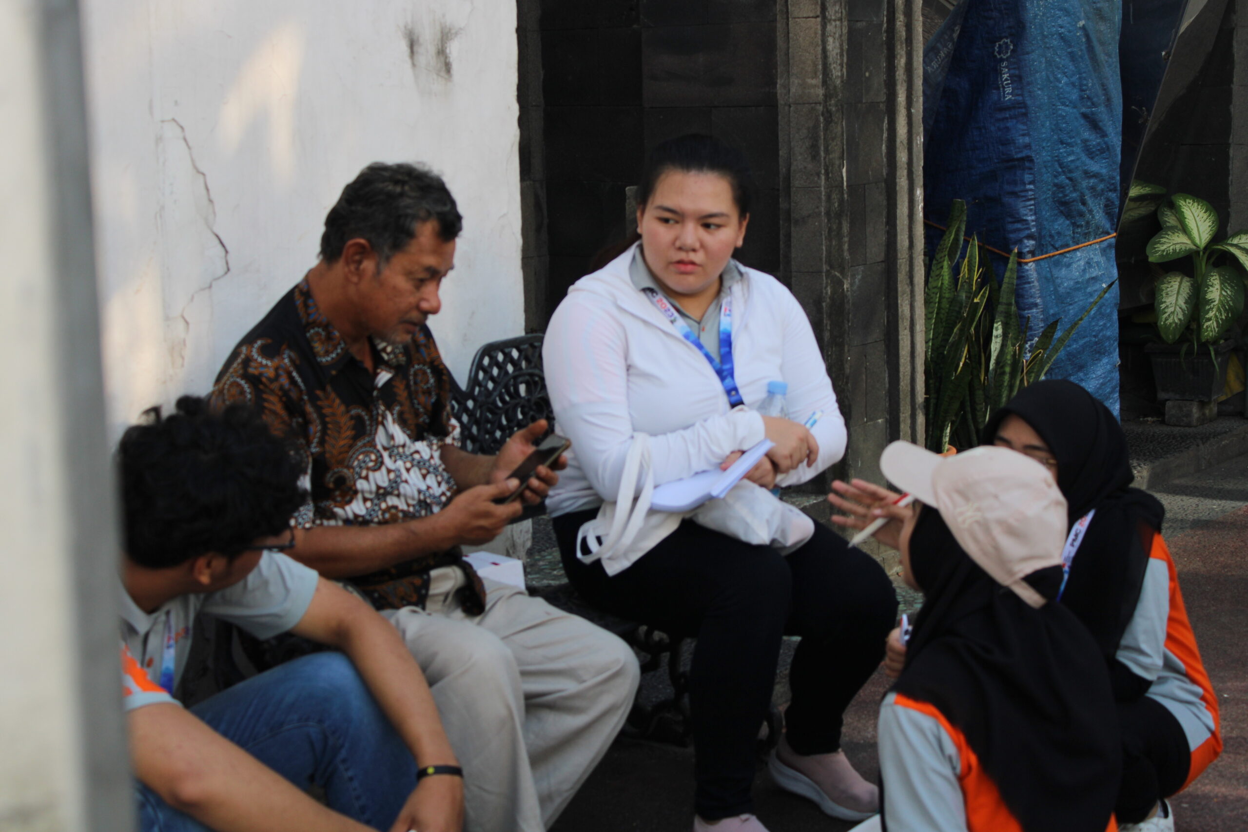 Peserta PMC 2023 saat mewawancarai narasumber di Jalan Gubernur Suryo dalam kegiatan studi lapangan di hari kedua