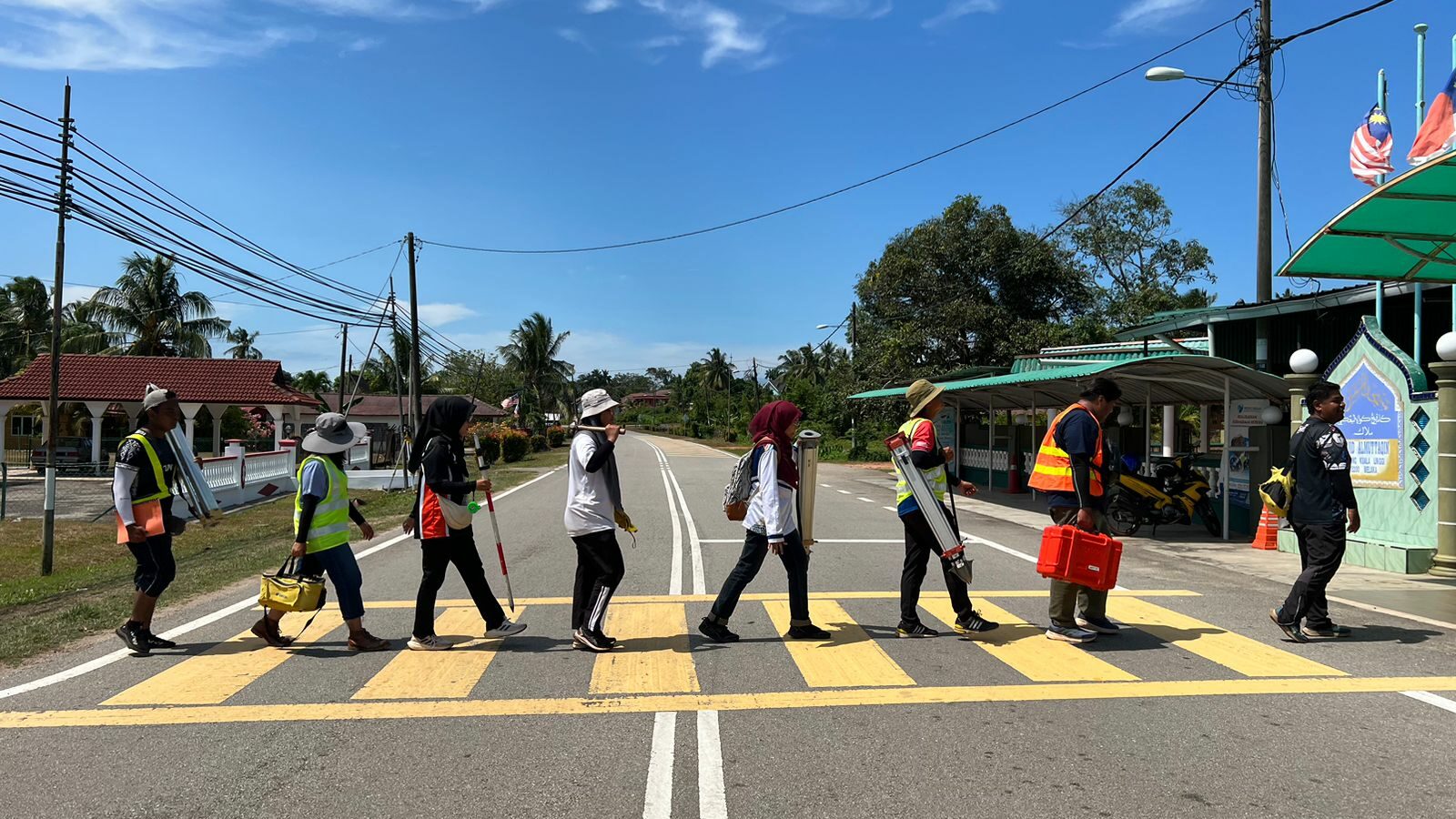 Kolaborasi antara mahasiswa Surveying Science and Geomatics UiTM dan Teknik Geomatika ITS saat pelaksanaan mata kuliah lapangan