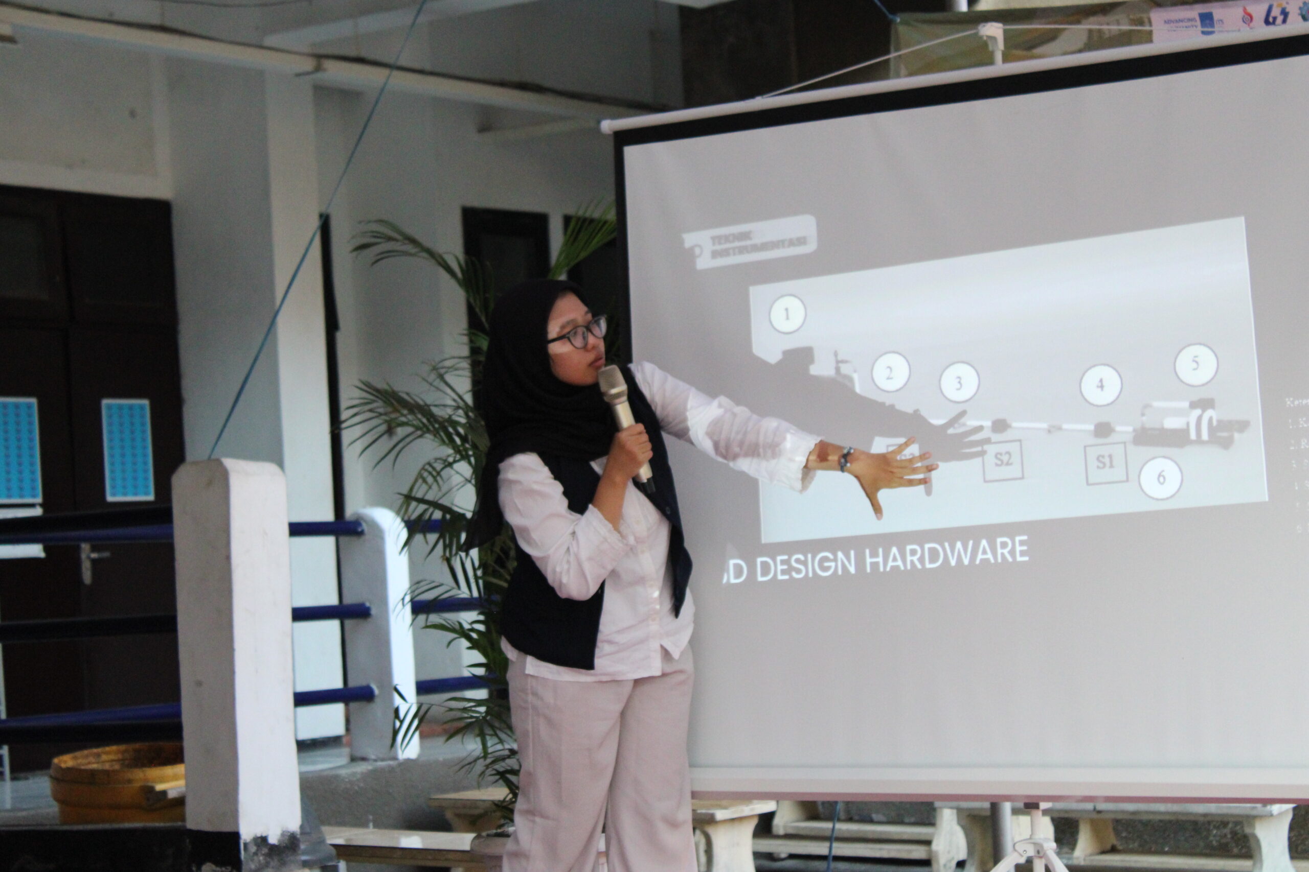Mahasiswa Departemen Teknik Instrumentasi Institut Teknologi Sepuluh Nopember (ITS), Dyah Ayu Retno saat mempresentasikan hasil karya inovasinya