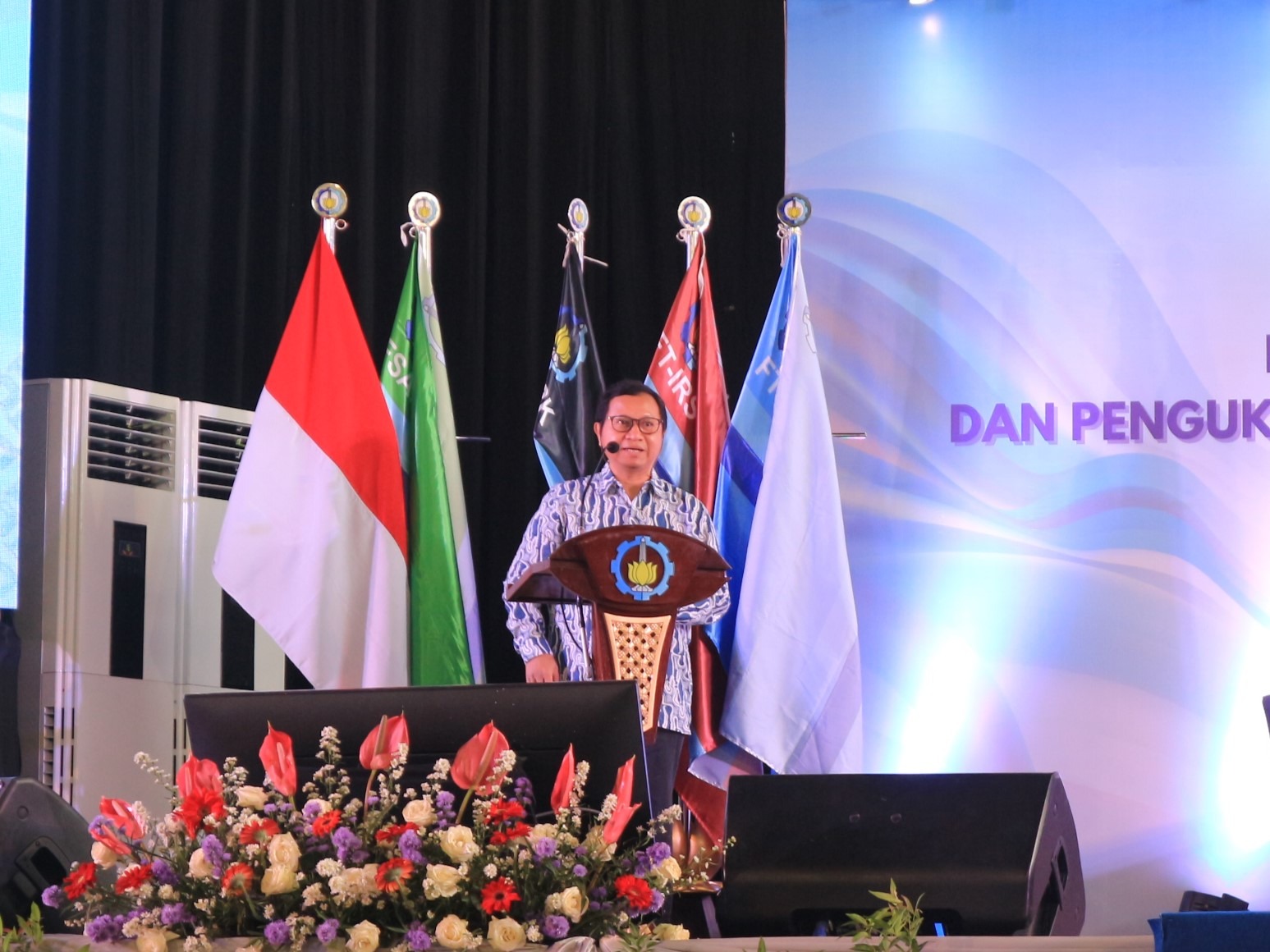 Wakil Rektor III ITS Bidang Sumber Daya Manusia, Organisasi, dan Teknologi Sistem Informasi, Prof Dr Eng Ir Ahmad Rusdiansyah MEng saat menyampaikan sambutan sekaligus mengukuhkan mahasiswa baru pascasarjana ITS tahun ajaran 2023/2024