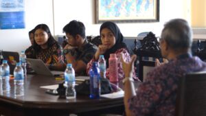 Ketiga perwakilan Deputi Bidang Kebijakan Pembangunan (DKP) BRIN di tengah diskusi untuk meramu kebijakan untuk mengatasi dampak penerapan NZE di Indonesia, Selasa (29/8)