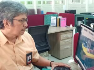 Irfan Eko Sandjaja saat menyimulasikan ketahanan model di towing tank lewat komputer di tempat kerjanya