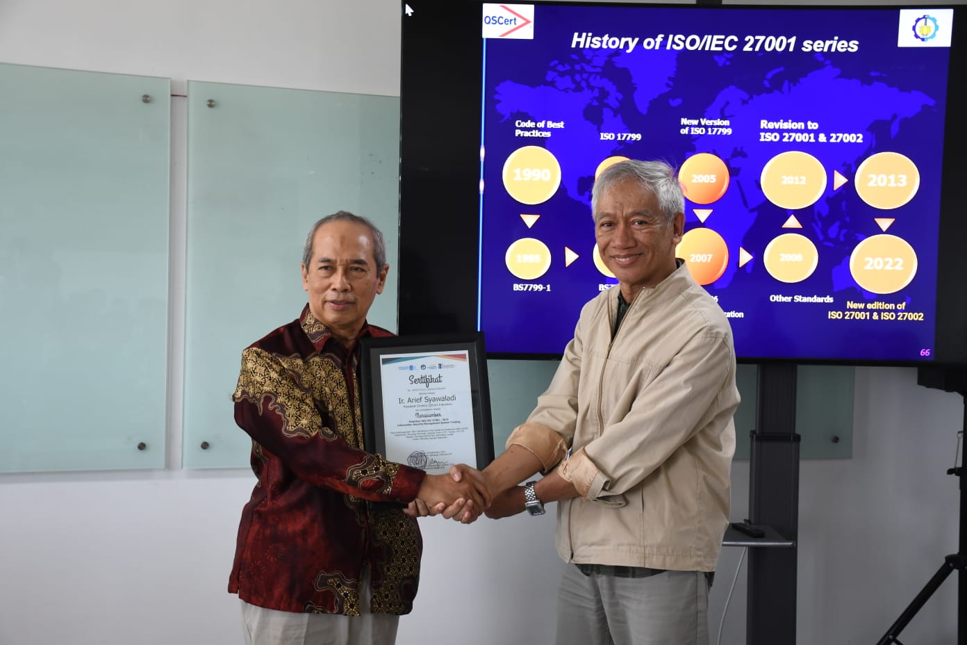 Presiden Direktur QSCert Indonesia Ir Arief Syawaldi saat memberikan pelatihan ISO/IEC 27001 : 2013 di ITS