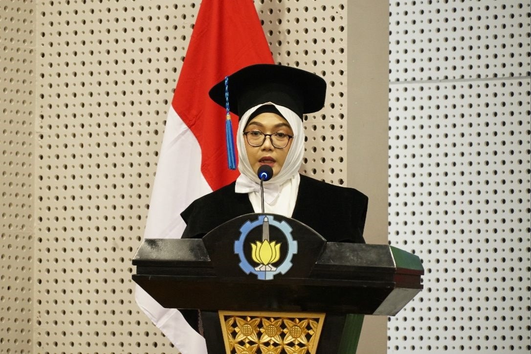 Prof Dr Katherin Indriawati ST MT saat memaparkan orasi ilmiahnya yang berjudul Peningkatan Availability Pada Sistem Kontrol Modern