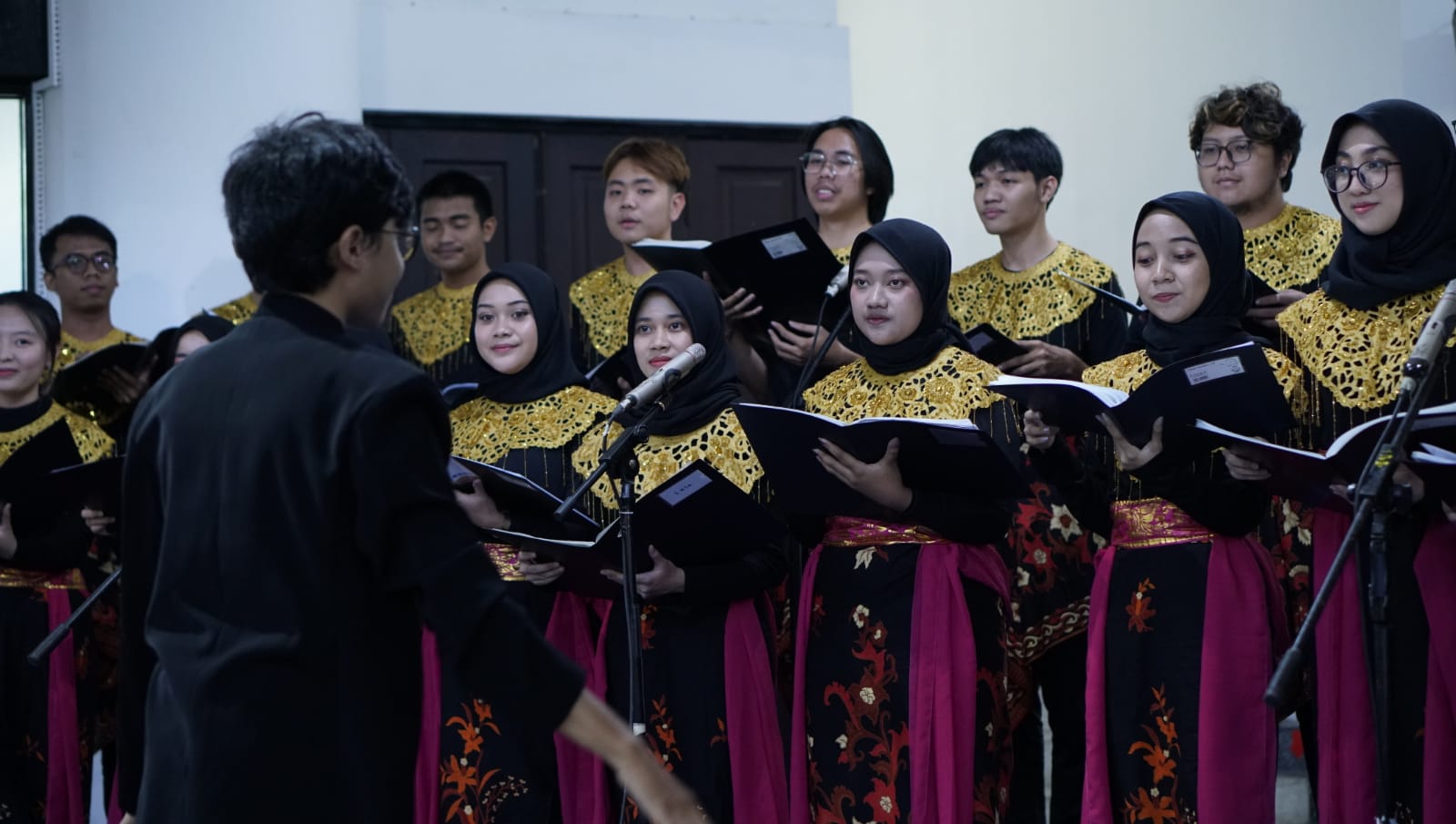 Tim Paduan Suara Mahasiswa (PSM) ITS ketika mengiringi lagu Perahu Kertas pada Wisuda ke-128 ITS