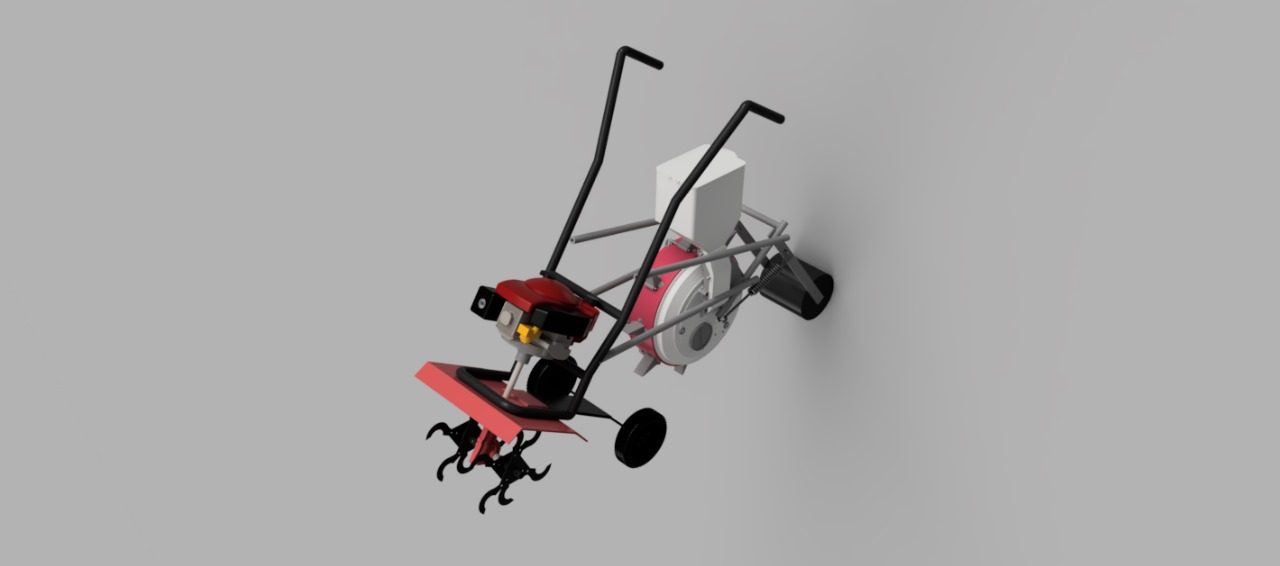 Tampilan desain mesin terintergrasi dual fungsi untuk menanam benih jagung dan menggembur tanah