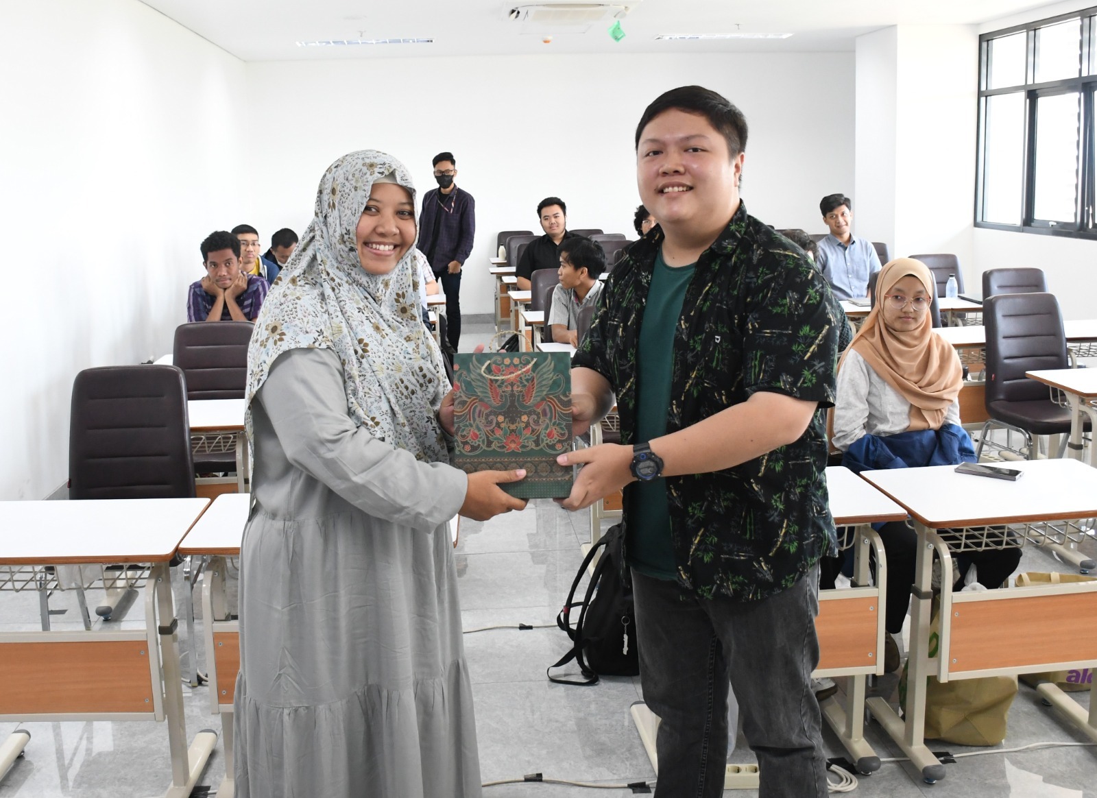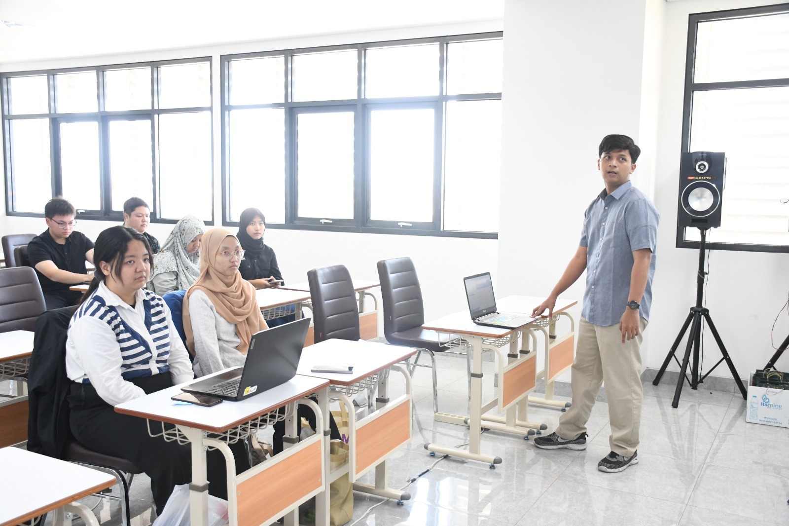 Kevin Nathaniel saat membagikan topik tugas akhirnya yang berjudul Rancang Bangun Sistem Pencegahan Penyakit Layu Fusarium pada Tanaman Allium Ascolonicum L Berbasis IoT menggunakan Fuzzy Logic