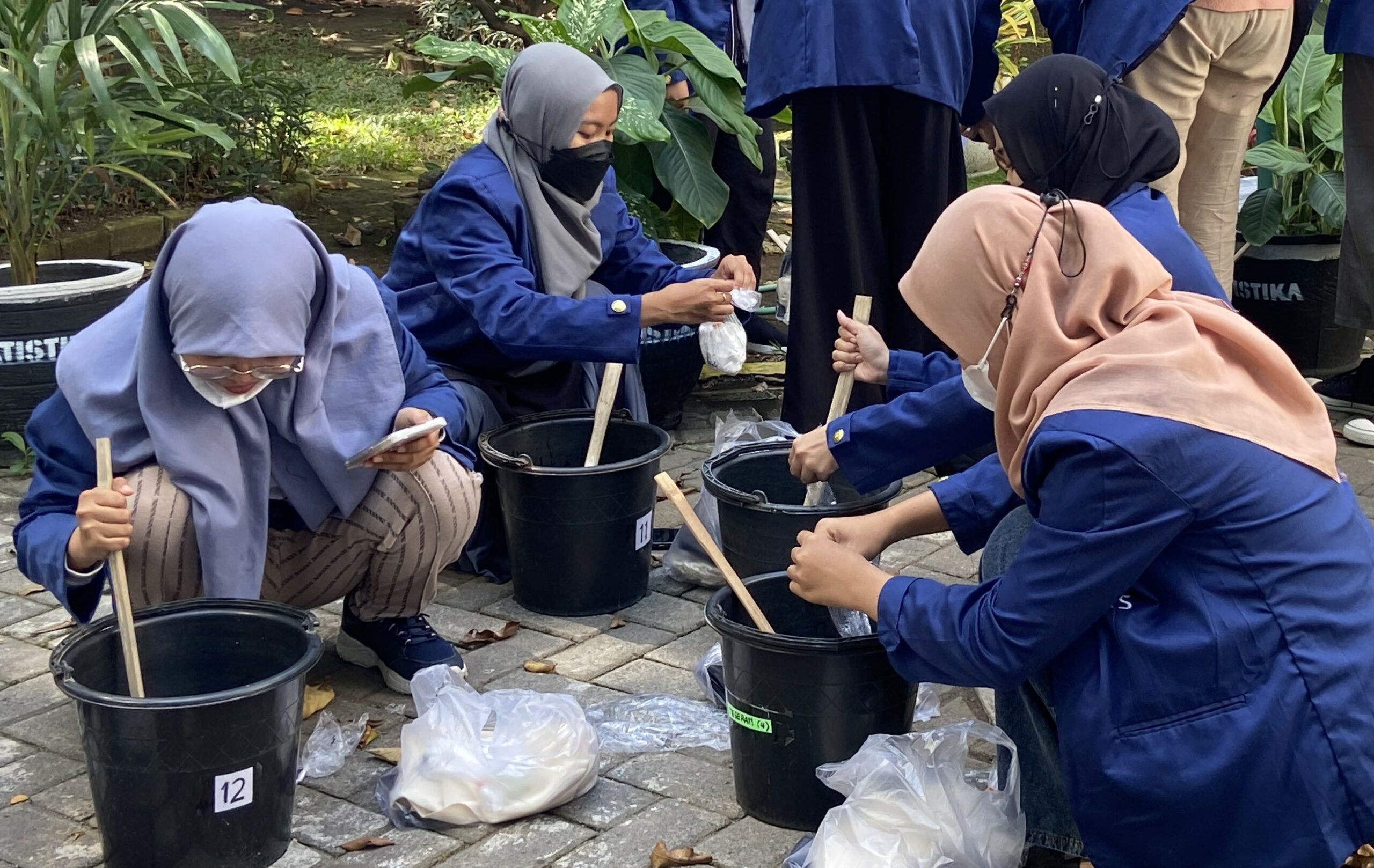 Ketua Tim Abmas Dr Ir Setiawan MS mengatakan, pelatihan pembuatan ecoprint ini menyasar sekitar 40 orang masyarakat pesantren yang terdiri dari santri, alumni pesantren, dan guru SMK. Dibimbing 11 mahasiswa Departemen Statistika ITS, pelatihan ini berlangsung sebanyak empat kali dalam sebulan. “Sebelumnya, para mahasiswa telah diberi pembekalan pembuatan ecoprint lebih dulu,” ucap Setiawan.