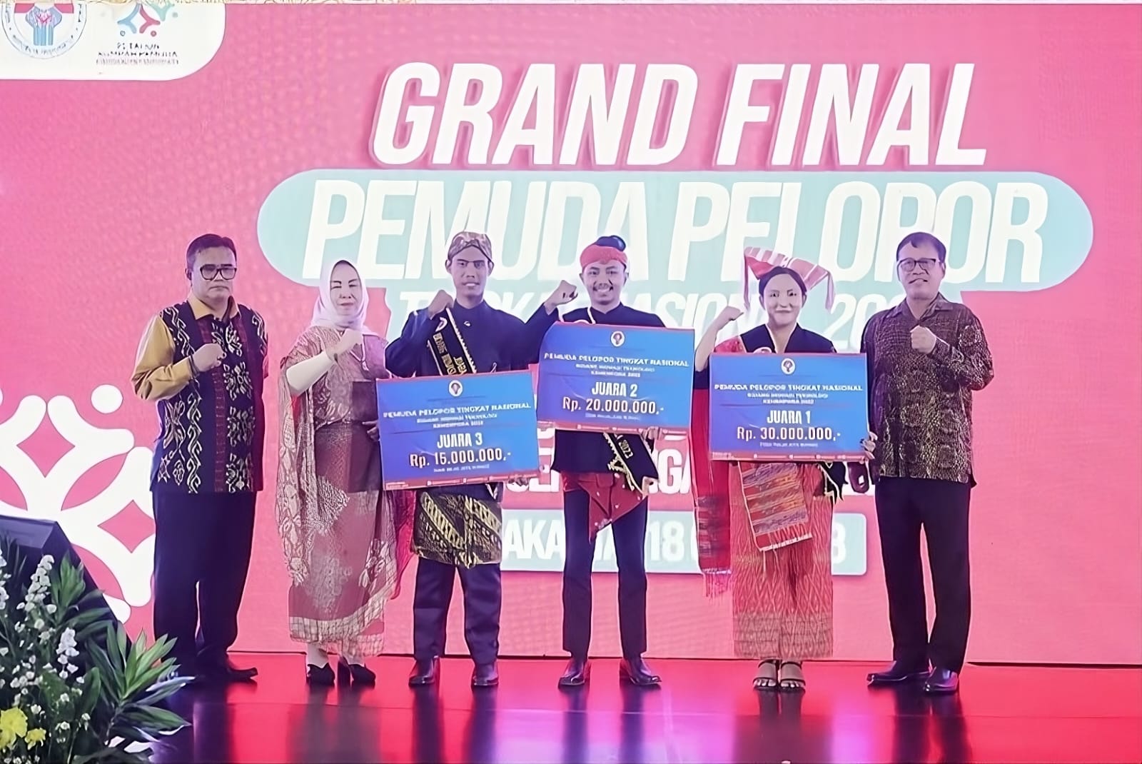 Ramadhita Putra Purnomo (tengah) bersama jajaran pemenang Pemuda Pelopor Nasional 2023 saat malam penganugerahaan