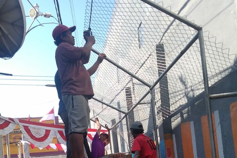 Warga Kampung Pogot III membuat tiang rambat tanaman markisa untuk mendorong tanaman menghasilkan buah berkualitas baik