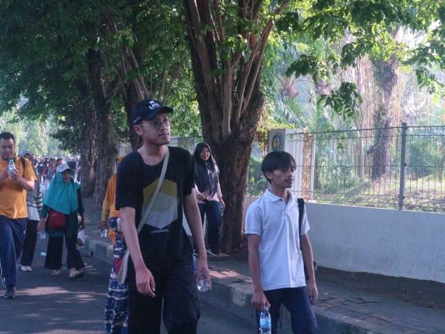 Keseruan peserta ITS Jalan Sehat ketika berjalan menyusuri jalanan ITS