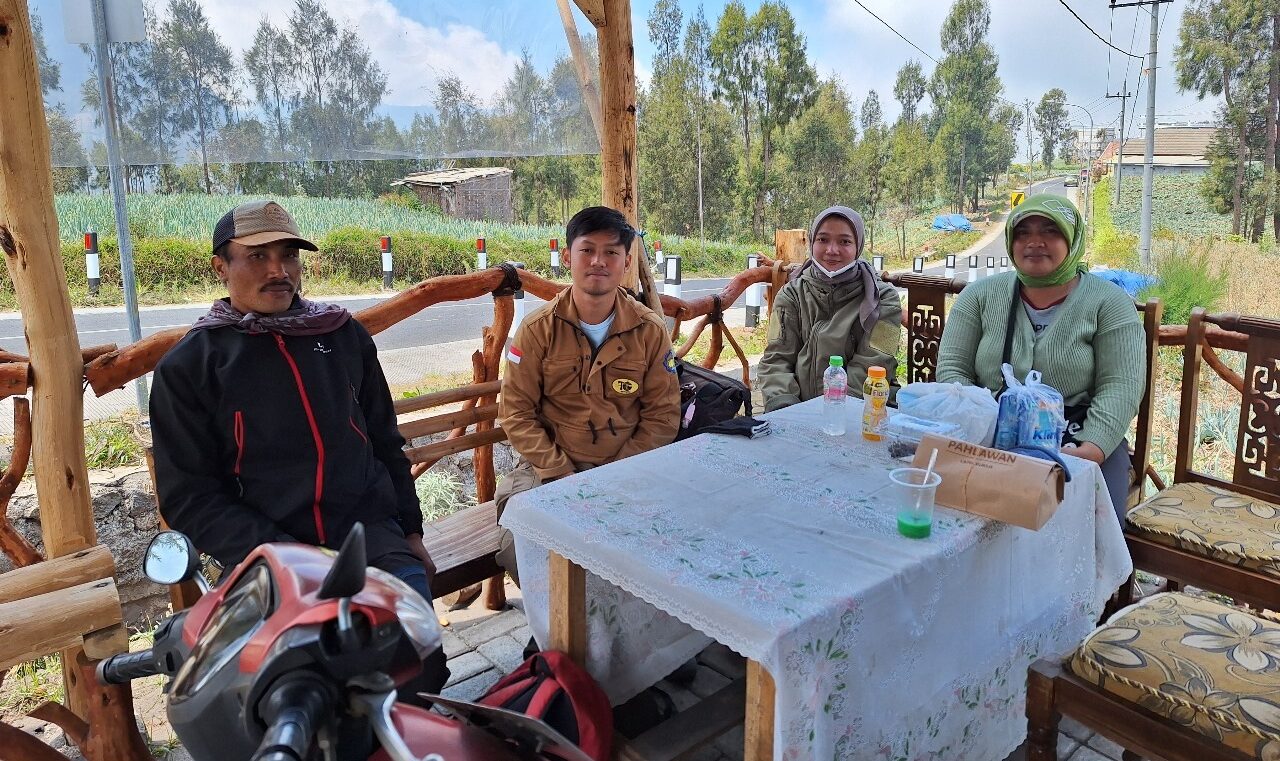 Tim KKN ABMAS ITS beristirahat di Desa Ngadisari, Kecamatan Sukapura, Jawa Timur