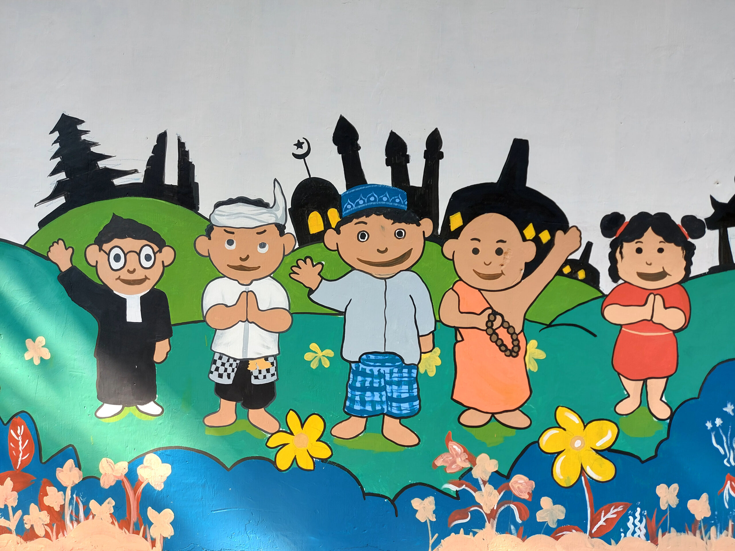 Salah satu gambar desain mural yang merepresentasikan keragaman suku dan budaya di Indonesia