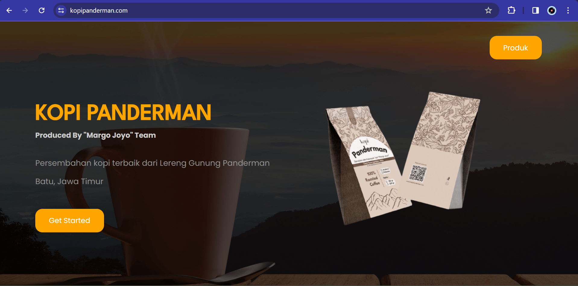 Tampilan awal website KOPI PANDERMAN gagasan tim KKN Abmas ITS