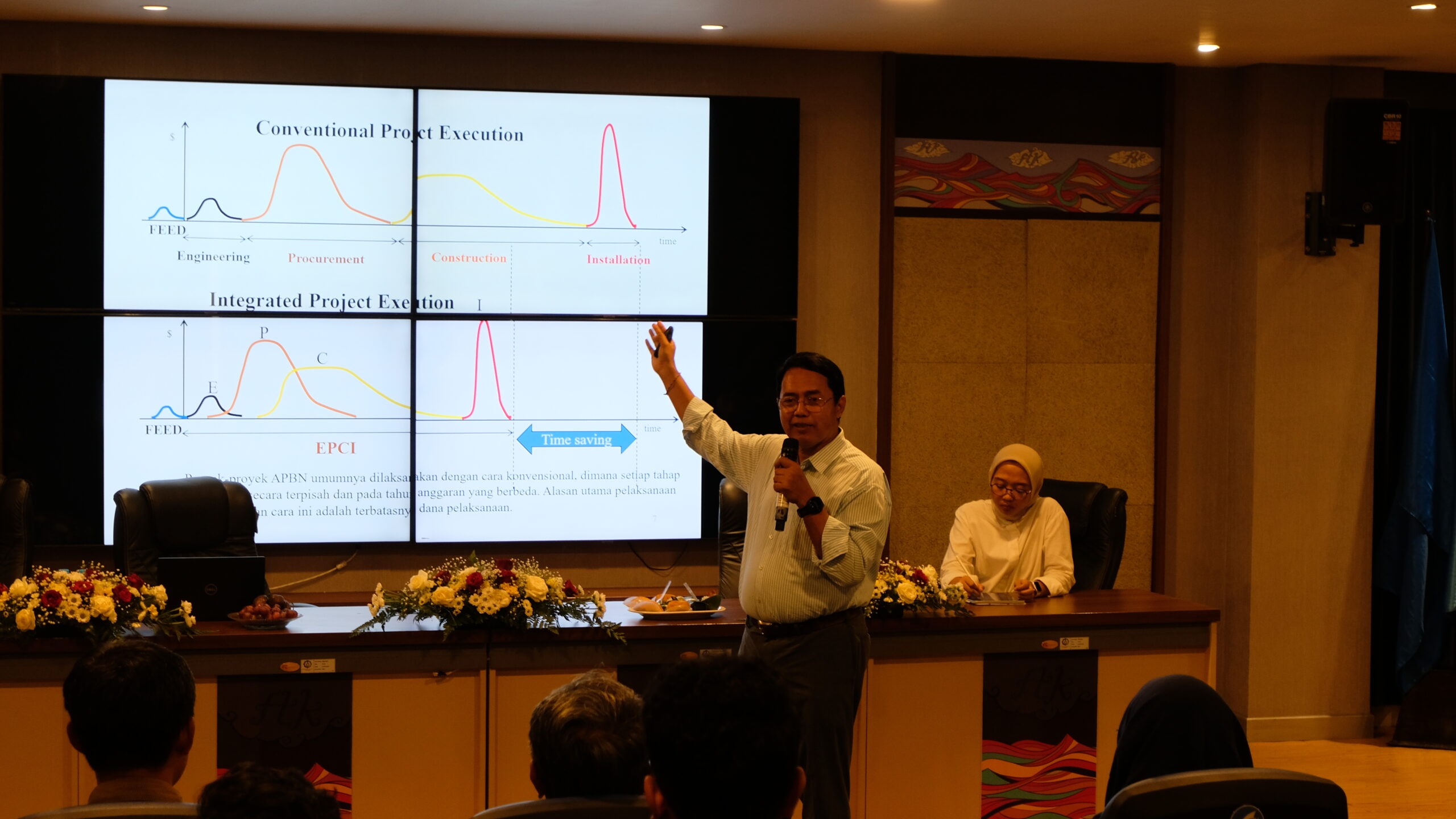 Praktisi yang telah berkecimpung di dunia migas selama 40 tahun ini turut menjelaskan perbandingan dua metode eksekusi proyek yang kerap digunakan