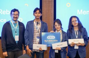 Tim Memory Reboot (dari kiri) Arundaya Pratama Nurhasan, Firania Putri Harsanti, dan Pelangi Masita Wati saat menerima penghargaan di Hackfest Indonesia 2024