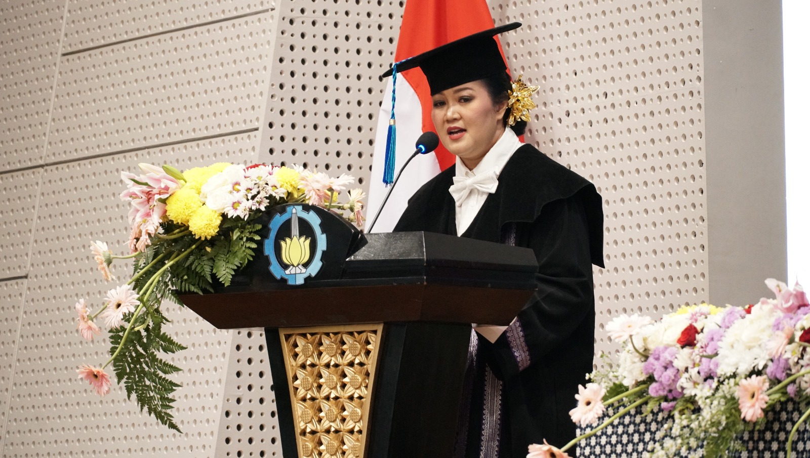 Prof Ir IDAA Warmadewanthi ST MT PhD saat menyampaikan orasinya pada Sidang Terbuka Dewan Profesor Pengukuhan Profesor ITS