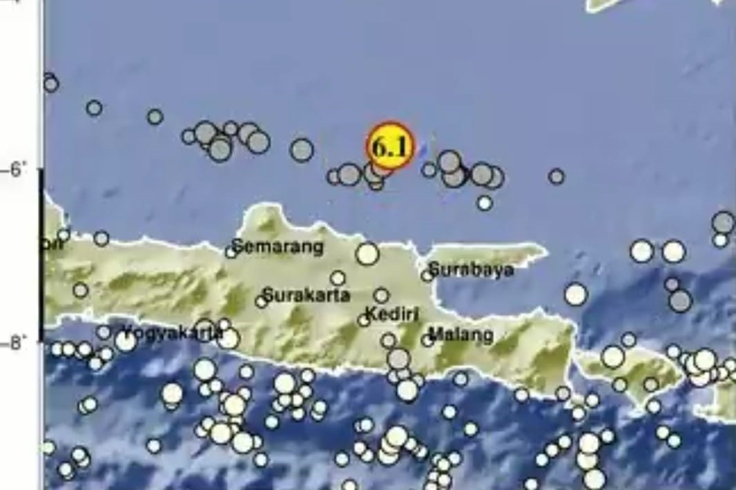 Gempa bermagnitudo 6,1 yang berpusat pada 132 kilometer Tuban, Jawa Timur (sumber dari BMKG)