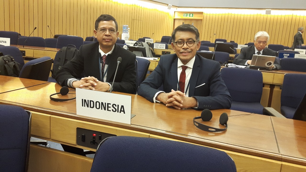 Prof Dr I Made Ariana ST MT (kiri) saat hadir sebagai delegasi RI pada Sidang IMO di London pada proses pengusulan Traffic Separation Screen (TSS) Selat Lombok dan Selat Sunda
