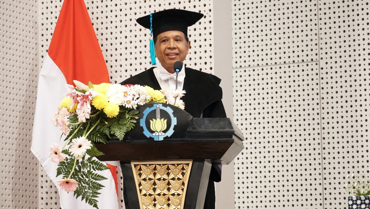 Prof Dr I Made Ariana ST MT saat memaparkan orasi ilmiahnya pada Sidang Terbuka Dewan Profesor Pengukuhan Profesor ITS
