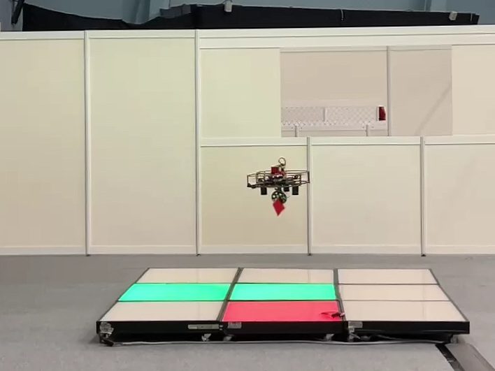 Drone Jati Sigma karya Bayucaraka ITS yang berlaga dalam kategori Semi-Autonomous (D1) SAFMC 2024 sedang menjalankan tantangan menyelesaikan permainan tic-tac-toe pada tahap tantangan
